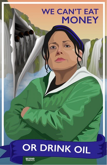 These portraits represent members of vulnerable communities impacted by climate change that Beyond Toxics works with and advocates for. Behind each figure is the reality of pollution ripping through what was once beautiful nature. I included quotes I found that best expressed the call-to-action to protect our planet. They serve to remind viewers everywhere of each person's individual responsibility to make decisions that help protect our planet from further damage.