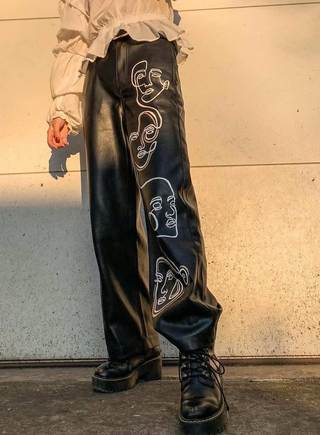 I painted a pair of leather pants using white leather paint in celebration of international women's day.
